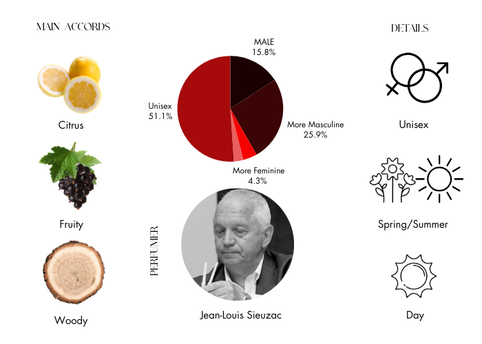 - Base notes are Cedarwood, Sandalwood, Musk and amber