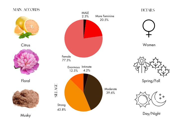 - Top Notes: Bergamot, Grapefruit, Nutmeg and Peach Blossom