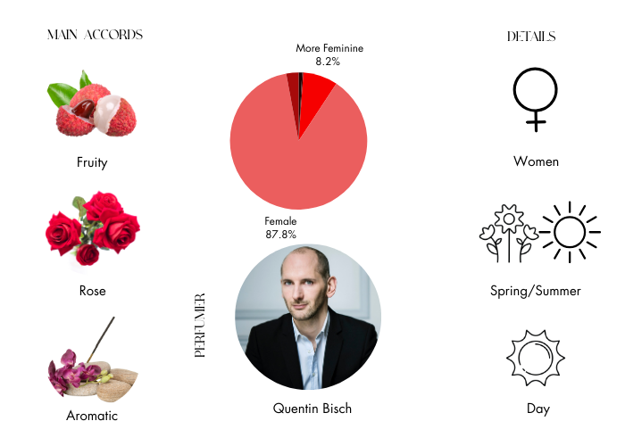 • Top Notes: Litchi, Rhubarb, Bergamot and Nutmeg