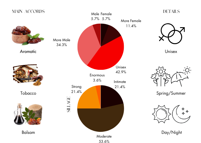 - Base Notes: Amber, Musk, Sandalwood, Tolu Balm and Vetiver