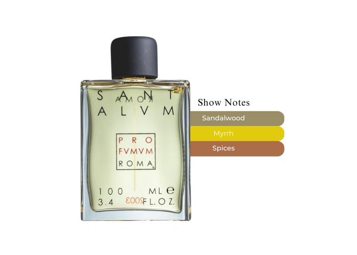 Santalum by Profumum Roma is a fragrance for women and men Scented votive fumes rise to the sky. Flower garlands, statues and columns everywhere. Carpets and drapes have been prepared. The warm and humid air diffuses the scent of the sacred forest. The ceremony has started… Main notes are: Absolute of sandalwood, Myrrh, Spices