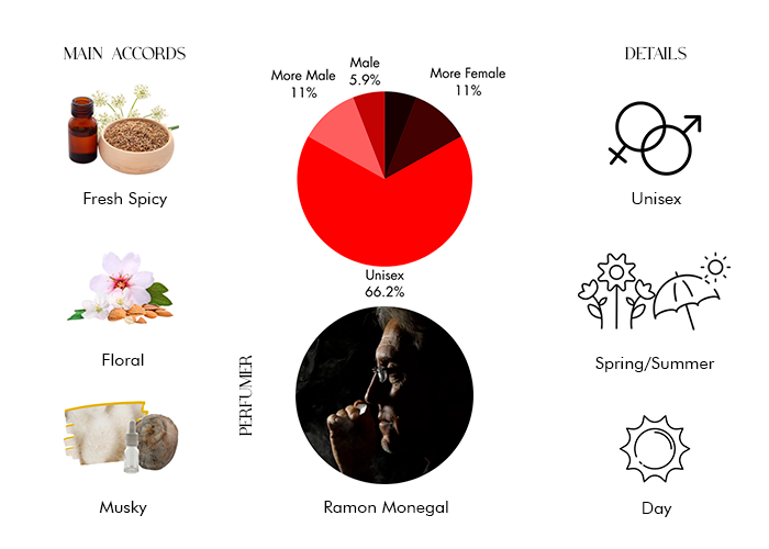 • Middle Notes: Ylang Ylang, Almond Blossom and Heliotrope