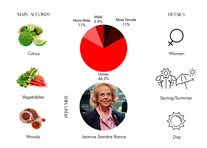 Designed for the modern woman of elegance, accords of florals, musk, spices and vanilla make this fragrance suitable for everyday use. A floral head accord delivers a lovely mix of florals and citrus with top notes of rose, bergamot and grapefruit. These notes settle to a heart accord of rhubarb, iris, coriander and myrtle before melting to a sultry base of vanilla,ÿmusk, rosewood and cedar.