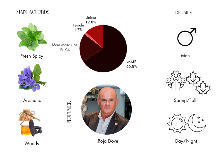 - Base Notes: Rhubarb, Cardamom, Clove, Nutmeg, Moss Notes, Patchouli, Vetiver, Cedarwood, Casmir Wood, Sandalwood, Tonka Bean, Labdanum, Ambergris, Musk