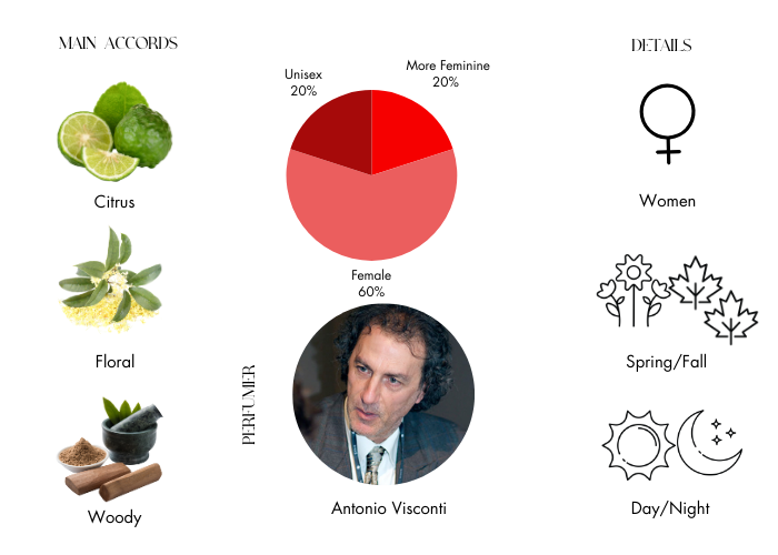 - Top Notes Bergamotto, vervain, cedar fruit, peach blossom
