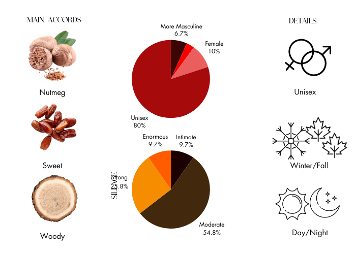 - Top Notes: cardamom, nutmeg, lemon