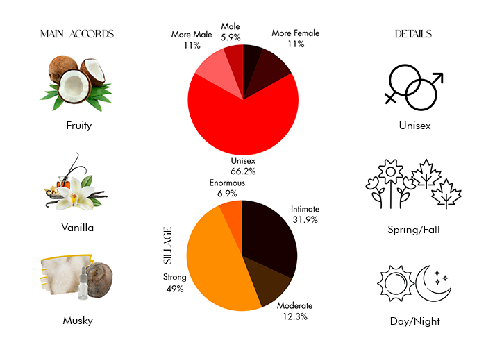 - Middle Notes: Vanilla, Orris Root and Tonka Beans