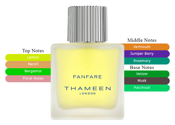 Inspired by the grandeur of regal palaces and the opulence of royal celebrations, Fanfare exudes a sense of grandeur and nobility. With its unique blend of notes, this fragrance is a tribute to those who appreciate the finer things in life and seek to leave a lasting impression wherever they go.