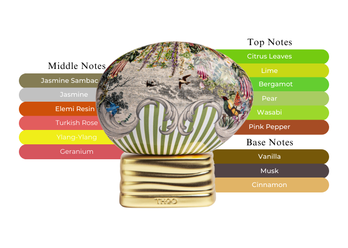 - Top Notes: Citrus Leaves, Lime, Bergamot, Pear, Wasabi and Pink Pepper
