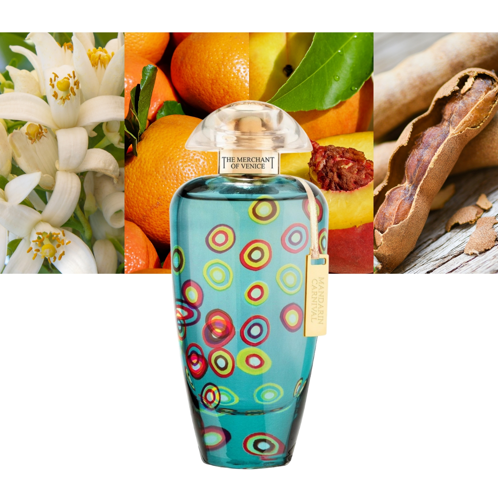Mandarin Carnival The Merchant of Venice is a sophisticated, sensual scent that captivates your senses. Innocence meets confidence in this modern fragrance - one moment reminiscent of the citrus fruits found in your favorite summertime cocktails, and another moment rich with newfound love or happiness.