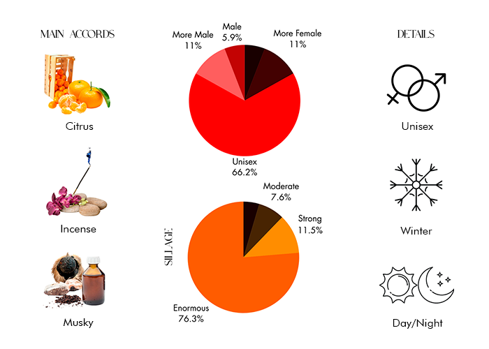 - Middle Notes: Jasmine, Muguet, Geranium, Osmanthus, Cedar Wood, Starwood, Myrrh, Labdanum and Incense