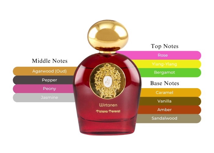 Enter an exotic world of luxury and decadence any time you spritz on Tiziana Terenzi Wirtanen, a radiant women's fragrance. This intoxicating perfume blends floral, woody and gourmand accords for a dazzlingly rich and sophisticated elixir you'll never want to wash away from your skin. Top notes of citrus bergamot, ylang-ylang and rose open the scent with an energetic, lush radiance. Meanwhile, heart notes of peony, jasmine, agarwood (oud) and bold black pepper infiltrate the essence with their bright, bold bouquet. Finally, base notes of creamy caramel, vanilla, sandalwood and warm amber leave a lingering softness that fully wraps the entire fragrance together. Perfect for any late-night occasion, this chic aroma is an essential accessory for any modern woman of today.
