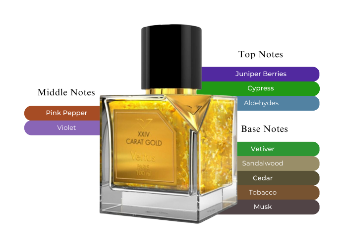 These are the fragrance notes in XXIV Carat Gold by Vertus Parfums.