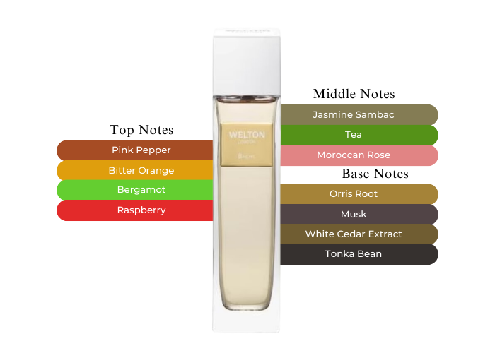 Allow yourself to be enveloped by the delicate fragrance notes that cascade from the bottle of Baicha Welton London. The citrusy burst of bergamot creates a refreshing opening, while the gentle embrace of jasmine adds a touch of femininity. As the scent settles, the warm and sensual musk base notes create an irresistible allure that lingers on your skin.