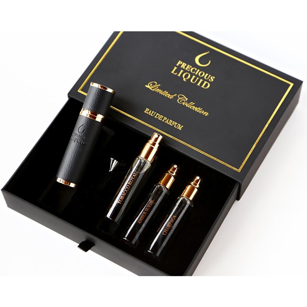 Tobacco royal starts with a smooth combination of warm spices. The intensity of the tobacco absolute is right there! Beautiful notes of apricot rich dripping davana and Broom absolute give great sustain to the heart of the fragrance. Vanilla infusion, cistus amber, and tonka beans insure that this fragrance staying power will go to the next day!Oud symphony begins with juicy fruits including; passion fruit, blackcurrant, rum, and osmanthus flower the presence of an intense oud is also right there combined with rose absolute and jasmin sambac. The intensity of the oud lingers all day with added notes of incense, praline, tonka bean, honey absolute and patchouli. This is full of personality!Just rock it!!Salt & pepper is an intriguing fresh combination of 3 peppers, black, pink and timur from Nepal. Great long lasting freshness due to bergamot, caraway, coriander and carrot seeds. Violet leaves, fresh incense and watery elements bring the salty part of this composition to life! The blend of 3 different origins of patchouli keep the mystery of this fragrance going for a long time!Champaca flower is the centerpiece of this tender floral bouquet. It has a burst of Bergamot, mandarine, and grapefruit in the introduction combined with an alluring tea note the richness of the Champaca flower the rose and orris absolute give great sustain to this elegant all season floralcy. The woody finish is superb due to a combination of sandalwood, vetiver, and nuzzly musks that make it a great reassuring companion throughout the day. People will draw near to you!