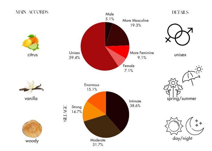 Fragrance notes : Lemon, Siicilian Mandarin, Guaiac Wood, Tonk Bean, Vanilla, Jasmine, Hedoine.
