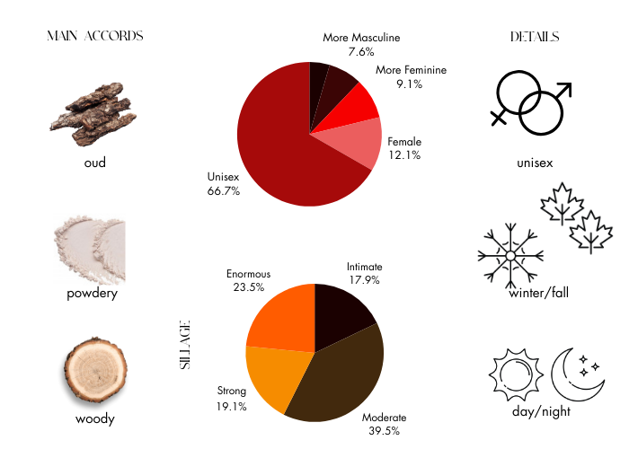 Fragrance notes are Floral Spicy, Floral Musky, and Woody Oudhy Powdery.