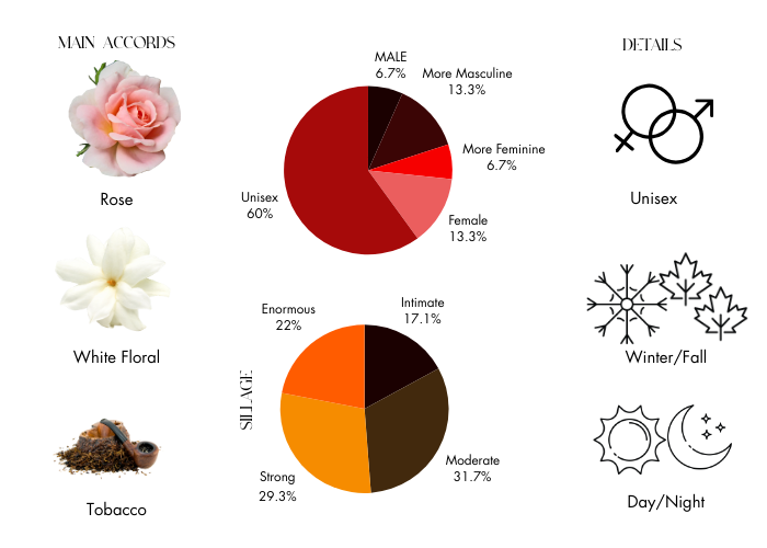 - Base Notes: Ambroxan, Patchouli and Tobacco