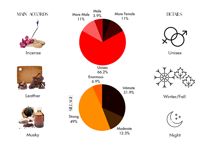 Its composition seduces with oriental, juicy, floral and woody notes and is based on accords of amber, taif rose, oud, black currant, raspberry, pink pepper, ylang-ylang, Bulgarian rose, jasmine, incense, sandalwood, patchouli, labdanum, leather, and musk.