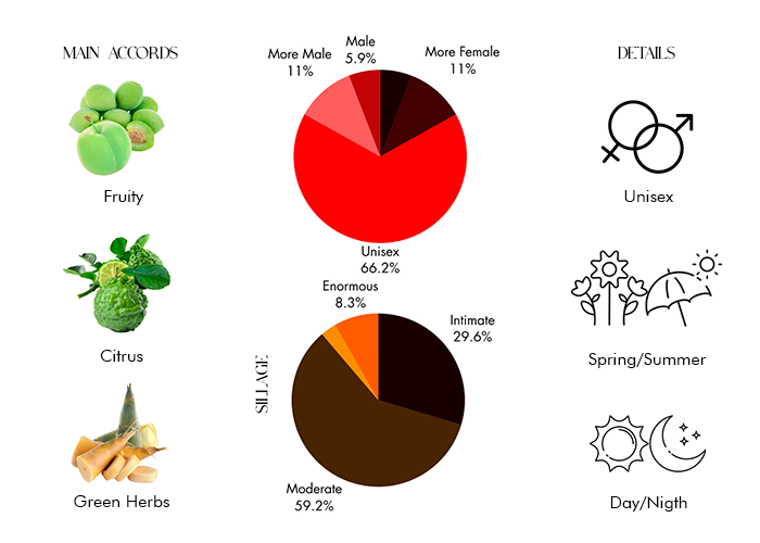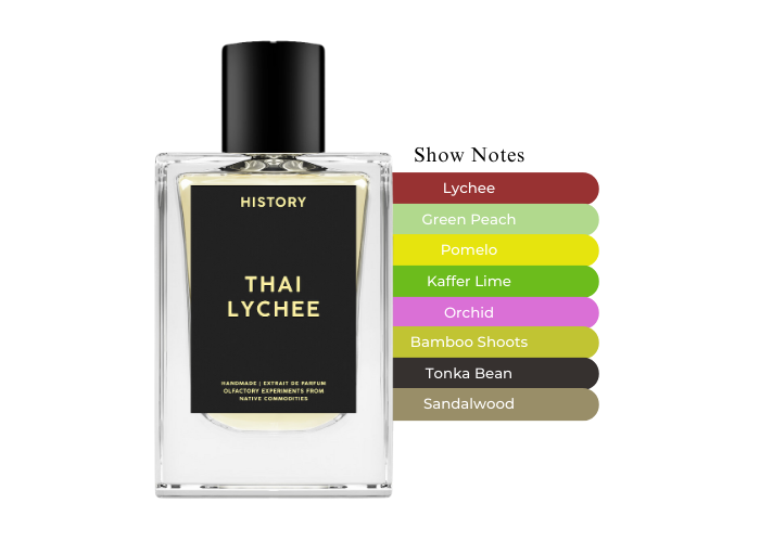Juicy Tangy Ripe Lychee, Green Peach, Pomelo, Kaffer Lime, Exotic Orchid Blossoms, Bamboo Shoots, Sensual Tonka Bean and Creamy Sandalwood