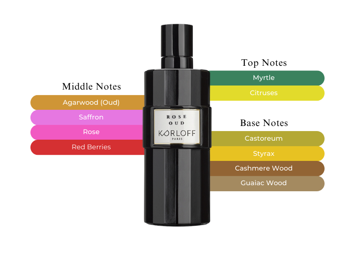 • Middle Notes: Rose, Oud, Saffron and Pink Pepper