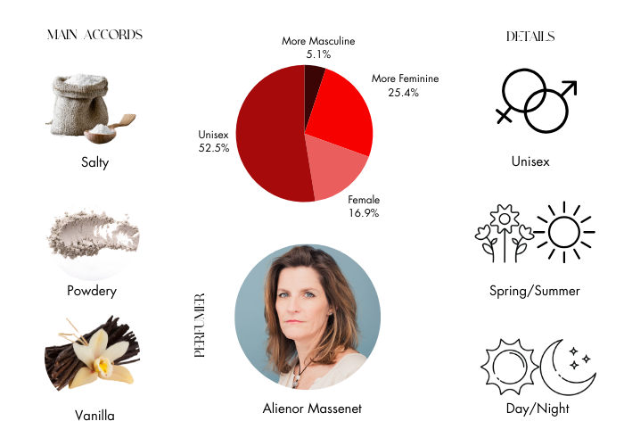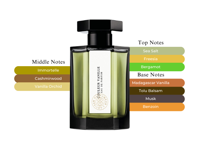 - Middle Notes: Madagascar Vanilla Orchid, Cashmere Wood and Immortelle