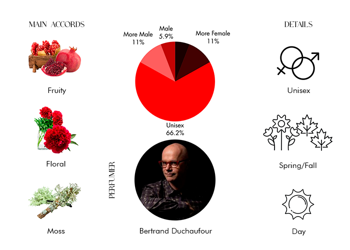 Fragrance notes are Pomegranate, black pepper, red peony, juniper berry, woody notes, oak moss,& balsam fir,Made in France .