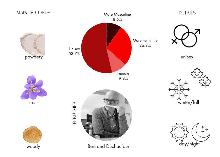 Fragrance notes are Iris, suede, velvet leather, saffron, whisky, lavender, rose, & musk,Made in France .
