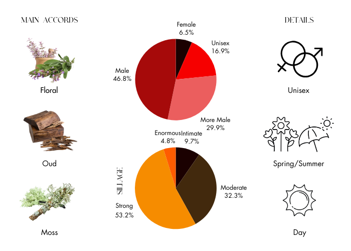 - Base Notes: Tonka Bean, Sensual Amber, Oakmoss, White Musk and Deep Labdanum.