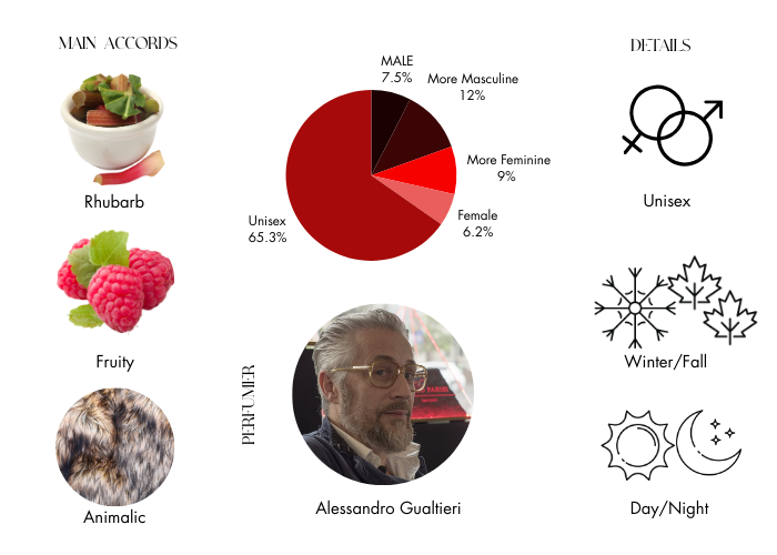 - Base notes are Leather, Animal notes, Oakmoss and Cedar.