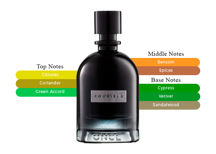 Courield Once Perfume enchanting blend opens with top notes of vibrant citrus, leading into a heart of spicy accords. As the fragrance settles, it reveals a warm and sensuous base of rich woods and luxurious vetiver. Each note harmonizes perfectly, creating a symphony of elegance that lingers on the skin long after the initial application.