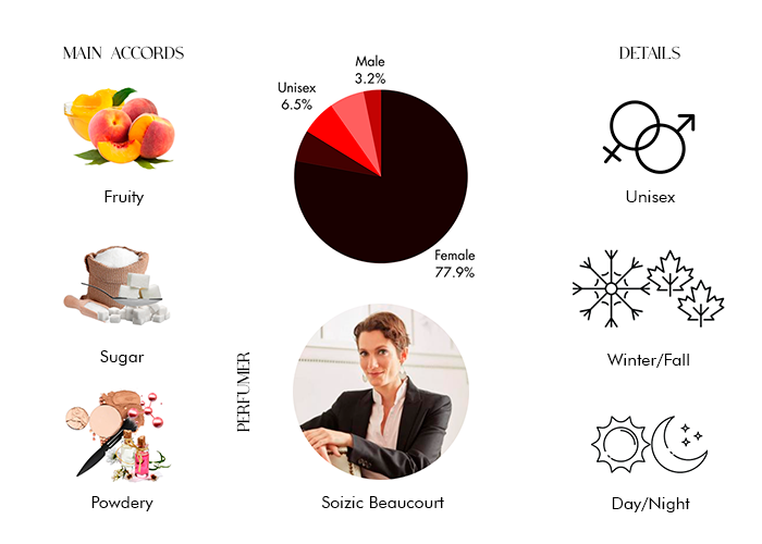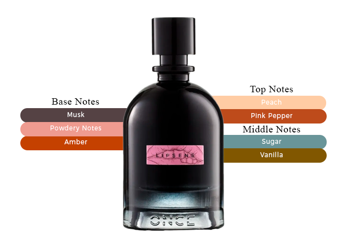 Lipsens top notes includes juicy peach and spicy pink pepper, awakening your senses with a burst of fruitness, setting the stage for a captivating olfactory journey. As the fragrance unfolds, sweet sugar and vanilla heart notes dance gracefully, adding a touch of romance and femininity to your presence. Finally, the warm and enticing base notes of musk linger on your skin, leaving a lasting impression that whispers stories of luxury and passion.