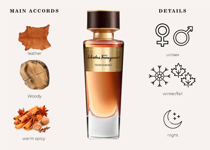- Middle notes : Leather, Patchouli and Saffron