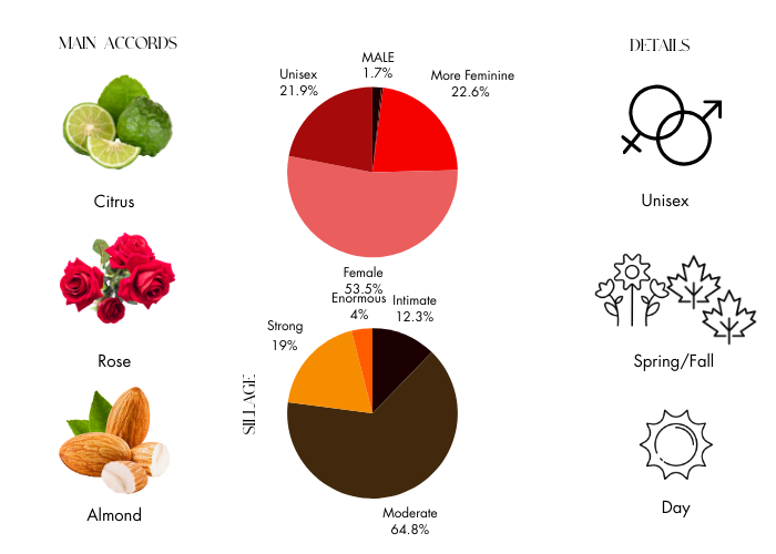 • Base notes are Heliotrope and Almond.