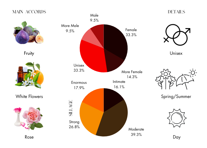 • Middle Notes are White fig accord, Sambac jasmine absolute and rose absolute.