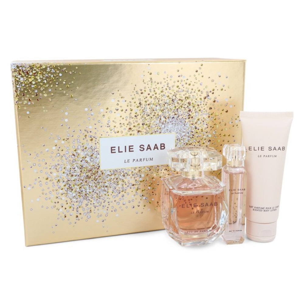 Elie Saab Le Parfum 3 pcs. Gift Set Eau De Toilette 3 OZ , Body Lotion 1.7OZ & EDT.34 OZ by Elie Saab for Women. This sweet and floral fragrance is a refreshing Mediterranean blend of Mandarin Tree Blossom, Orange Blossom, Gardenia, Vetiver, Rose, and Honey.