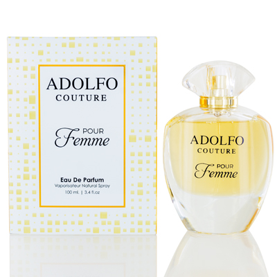 Adolfo Couture Pour Femme by Adolfo Perfume. Adolfo Couture Pour Femme is a fruity, rose fragrance for women. Prominent notes of rose, blackberry and champagne are grounded with musk and white cedar for a long-lasting scent for all day and night wear. The woody feminine scent is perfect for fall and winter wear. The simple elegance of the bottle radiates femininity as much as the perfume does on the wearer.