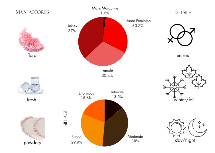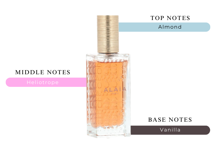 Fragrance notes are White flowers, Solar notes, Vanilla, Powdery notes, and Musk.
