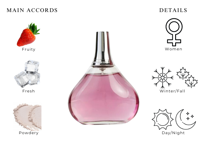 This fruity and fresh scent is a blend of Plum, Peony, Freesia, and Orange Blossom.