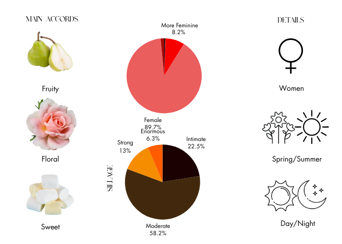 - Top Notes: Pear, Raspberry and Pink Grapefruit