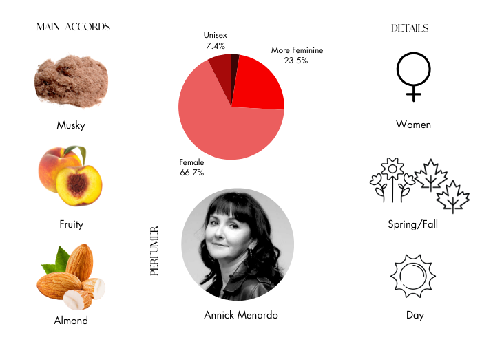 Musk, Almond, Peach, iris and Rose.