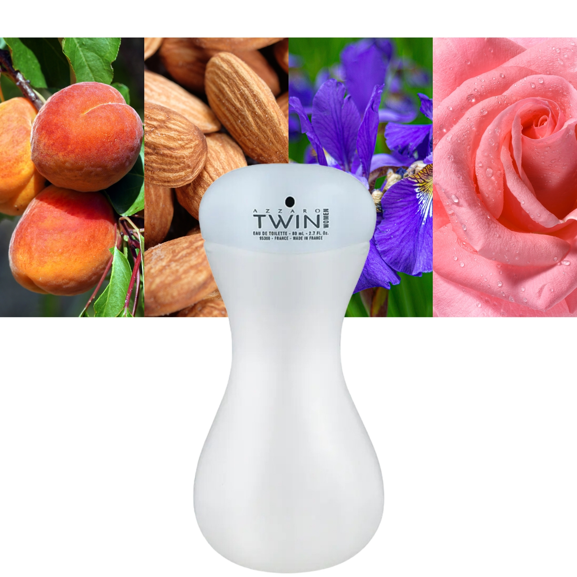 Azzaro Twin Women is a perfume that combines fruity notes with white flowers such as rose, iris and peach! This fragrance was launched with a clean and soft scent. Perfect for any season and setting, Twin Women will transform you into the confident twin sister that loves turning heads wherever she goes!