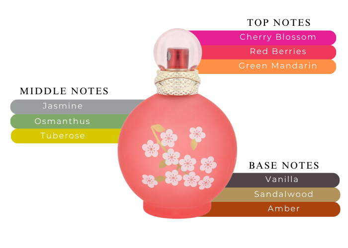 Introduced In 2017 By Britney Spears, Fantasy In Bloom Britney Spears Edt Spray 3.3 oz Includes Notes Of Cherry Blossom, Sandalwood, Tuberose, Jasmine, Amber, Vanilla, Green Mandarin, Red Berries.