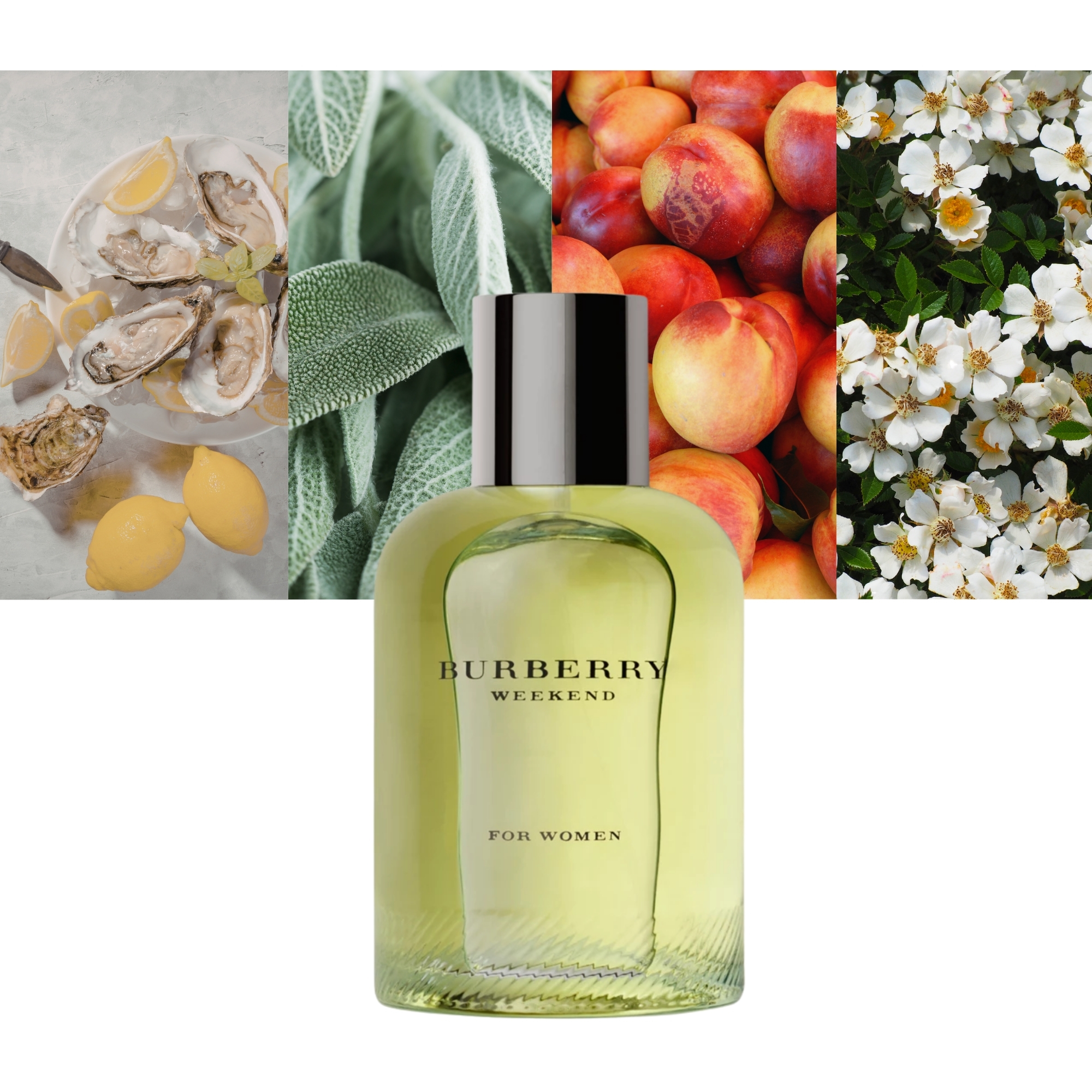 Crafted by Burberry's master perfumers, Weekend by Burberry evokes a sense of adventure and freedom in every spritz. The top notes of tangerine instantly awaken your senses, while the delicate heart notes of rose and peach add a touch of femininity and allure. The fragrance gently settles into a warm and woody base of sandalwood and cedar, leaving a trail of sophistication that lingers throughout the day.