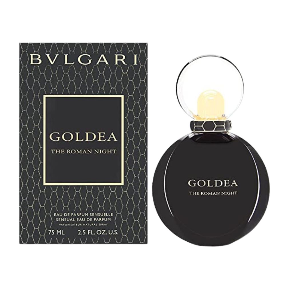 Goldea The Roman Night by Bvlgari is a floral Chypre fragrance for women. It features black pepper, mulberry, peach blossom and other fruity notes at the top; black peony and night-blooming jasmine in the heart; green notes, patchouli and woods in the base; created by Alberto Morillas.