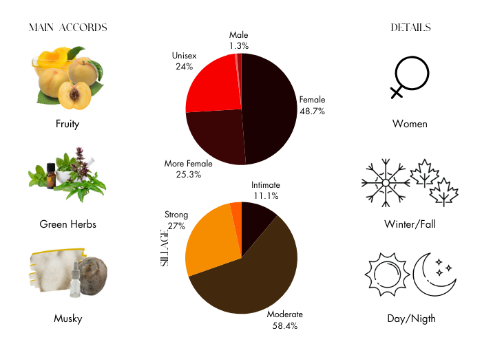 At the heart of this fragrance lies patchouli, a note that exudes sensuality and warmth. It is further enhanced by hints of orris absolute, which add a touch of elegance and refinement. White musk, with its earthy tones, grounds the fragrance, creating a balance that evokes a sense of timeless luxury.