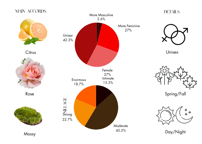 • Base Notes: Moss, Patchouli, Cistus and Musk