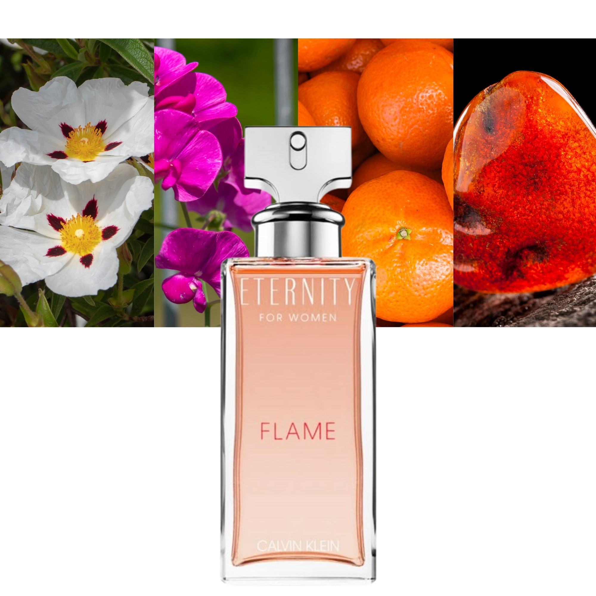 Induce a passion that is too hard to resist with Eternity Flame, a sparkling fragrance for women. Launched in 2019, this fragrance features notes of Mandarin Orange at the top. The Calvin Klein fragrance then travels to the heart with sweet and juicy notes from Sweet Pea, while the base is an intoxicating fusion of notes from Labdanum.