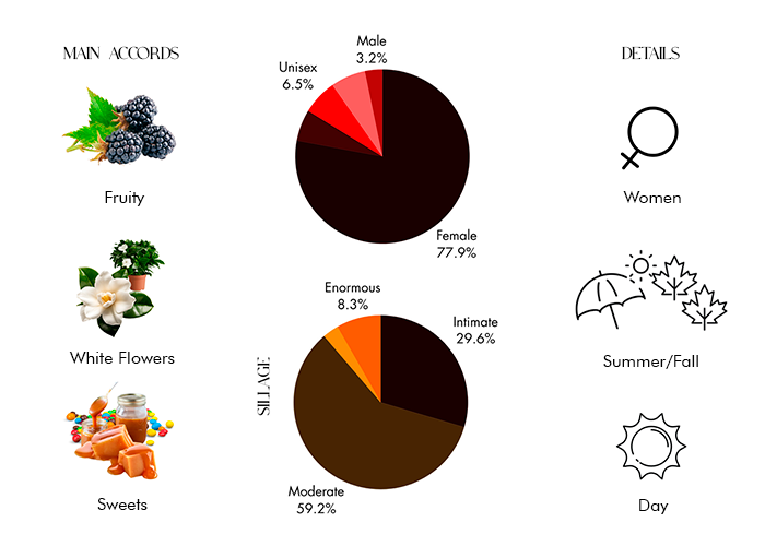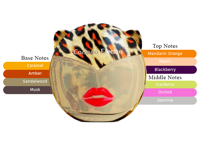 Launched by the design house of Carmen Electra. This feminine fragrance has a blend of peach nectar, wild blackberry, gardenia petals, night blooming jasmine, tiger orchid, sandalwood, warm amber, and liquid caramel, and sensual musks notes.
