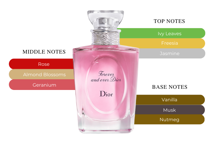 Freesia and Jasmine petals blended with Bulgarian Rose make Forever and Ever Dior a tender and delicate fragrance.